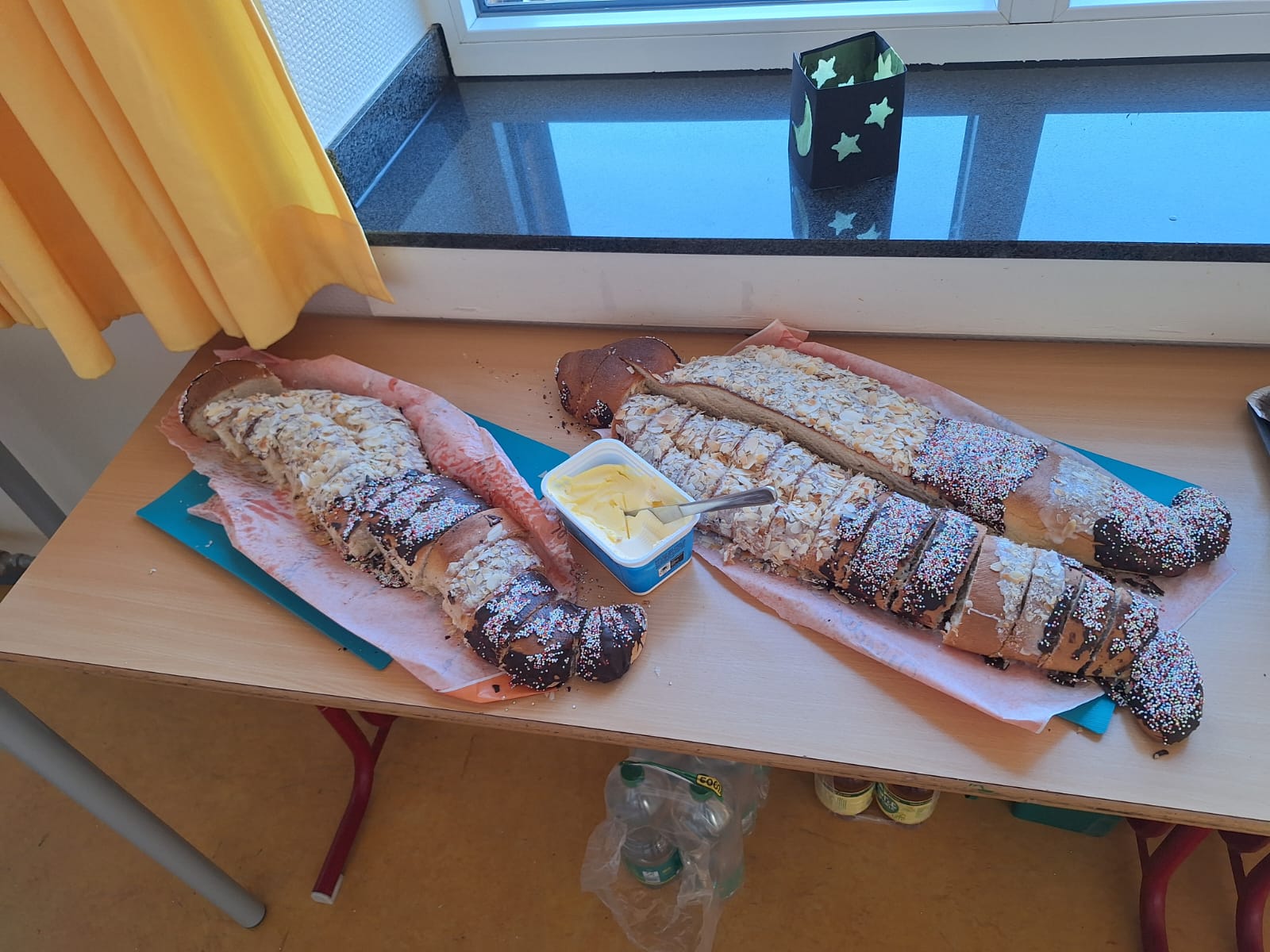 Seit vielen Jahren Tradition an St. Martin: Die Weckmänner! Am Dienstag war es wieder soweit und zum Frühstück wurden in allen Klassen die Weckmänner angeschnitten. Und weil es so lecker war, ist natürlich auch nichts übrig geblieben.