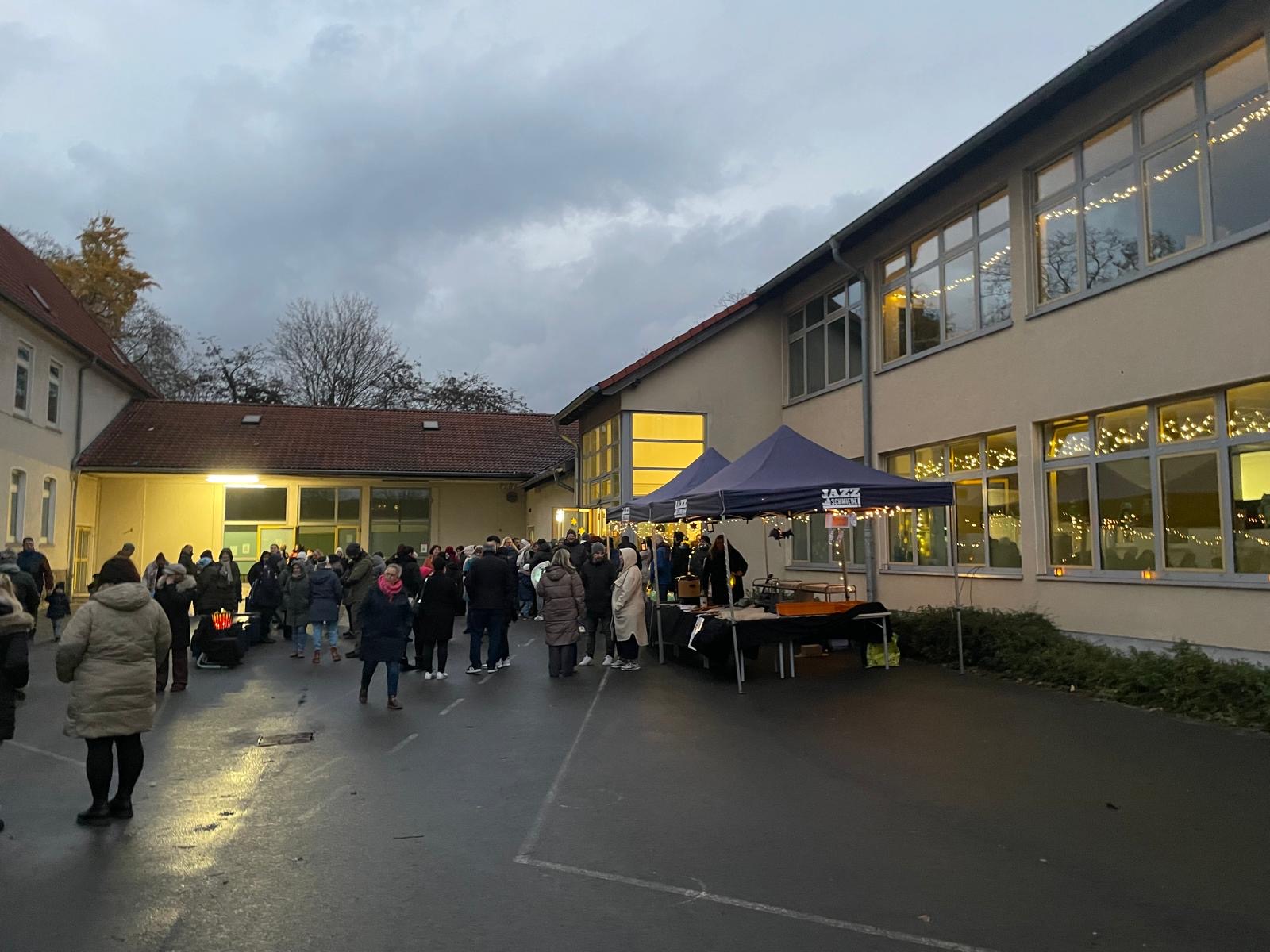 Zum Schluss gab es für Groß und Klein warmen Kinderpunsch und leckere Weckmänner. Der Förderverein hat alles gespendet – vielen Dank dafür! Auch die Schulsozialarbeit und die INI waren mit ihren Mitarbeitenden zur Unterstützung vor Ort.