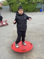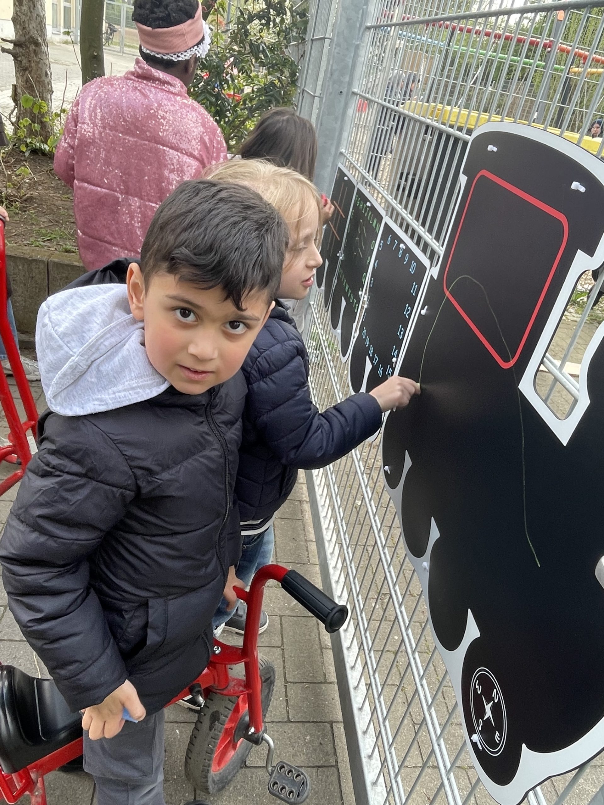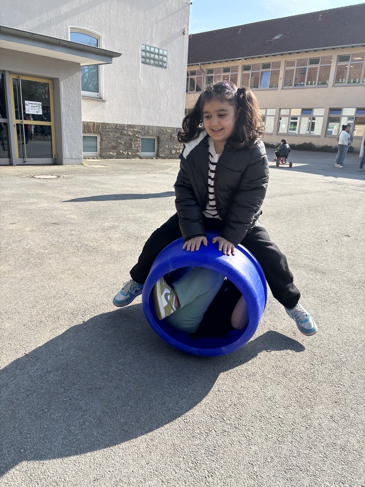 Am Zweitstandort an der Ottostraße freuen wir uns sehr über neue Spielsachen vom Förderverein: ein Spielfass, einen Kreidezug und einen Schaukelkreisel. Die Kinder können sich damit draußen bewegen, gemeinsam spielen und toben. So werden die Pausen noch fröhlicher, bunter und abwechslungsreicher.